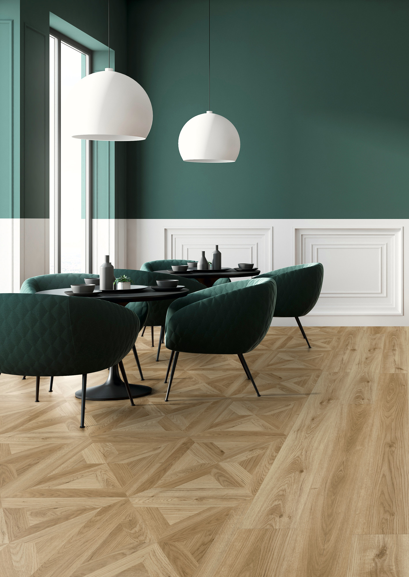 Het oude vakmanschap herleeft, de tegels van Versailles in eikenhoutlook creeren prachtige ruimteaccenten.
